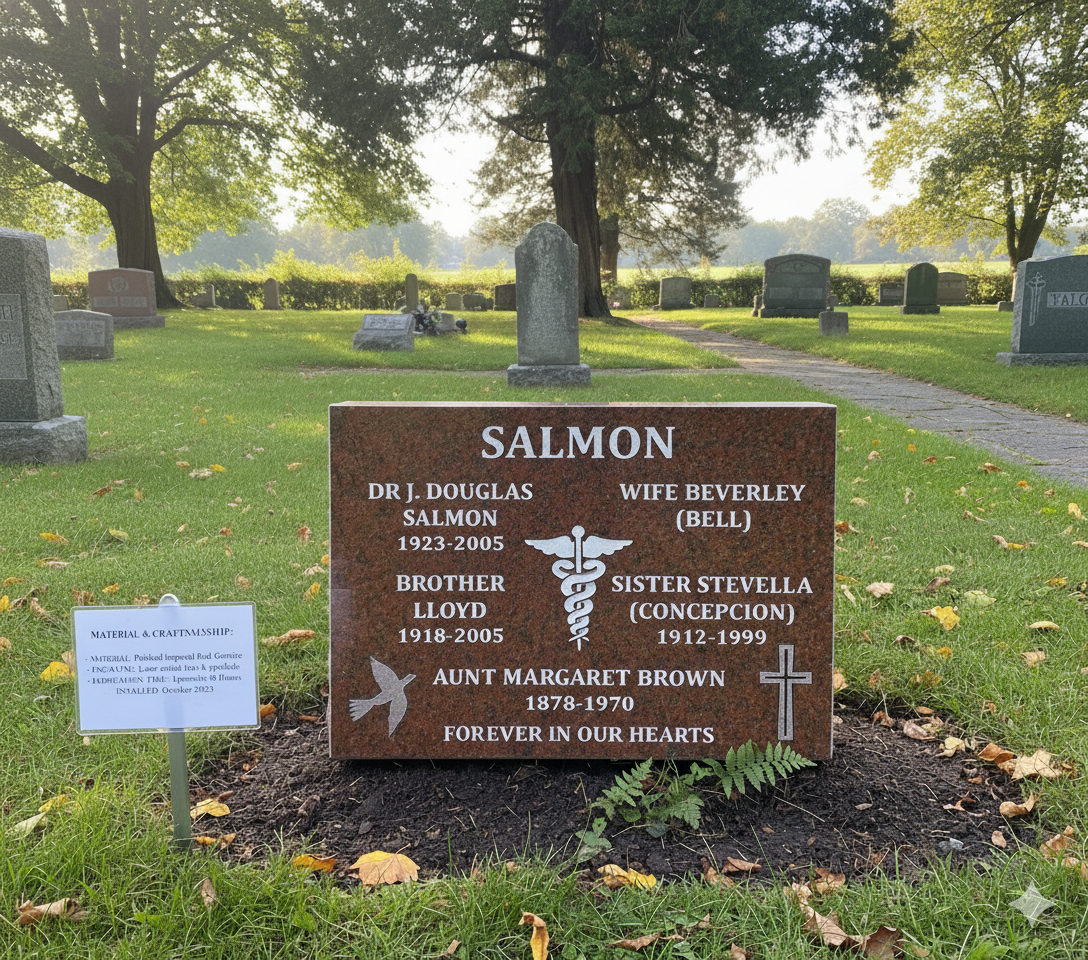 Granite markers can vary slightly in colour depending on the amount of light exposure. The benefits of choosing a granite flat marker is the wide selection of granite colours available. We have a wide selection of granite markers for you to sample. This allows you to get a feel of the difference that granite colours can create to the beholder. Please keep in mind that flat markers can be customized to fit any requirements, our standard sizes are listed with pricing (price chart to the left). Size and shape can be adjusted upon preference. Single and companion granite markers can be produced in any granite colour and to your specified size.